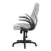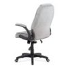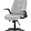 Moderná kancelárska stolička potiahnutá šedostriebornou látkou vzor pepito. K pohodli prispievajú odklápacie plastové podrúčky striebornej farby, čalúnené extra jemnou látkou. Stolička je výškovo nastaviteľná s permament kontakt mechanizmom, kolieska sú vhodné na koberec,